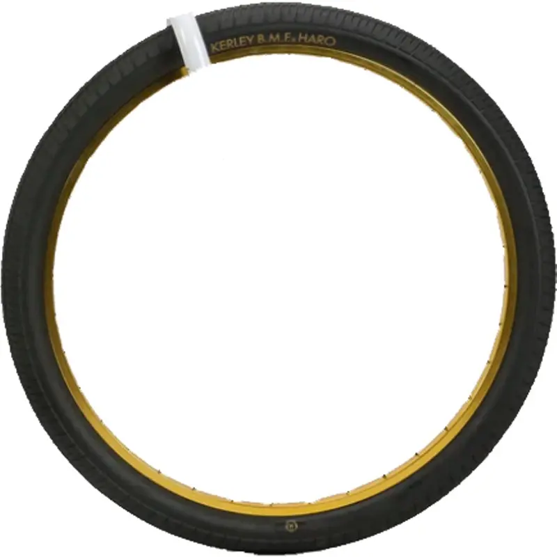 Haro Kerley BMF MS-5 29x2.4’’ Tire BlackThe Haro Kerley BMF MS-5 29x2.4’’ is a Street specific tire with wraparound tread design for extreme adherence on asphalt, concrete, and halfpipes. MX type casing with thicker sidewalls. 50 PSI. 30 TPI. 2 Tires in stock. The gold rim is not included. Available in Black.