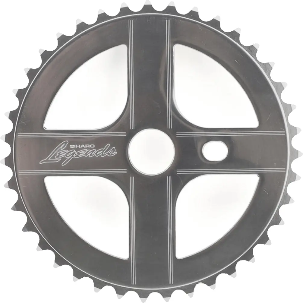 Haro Legends Sprocket 39t SilverThe Haro Legends Sprocket returns from the 80’s based off the original Flight Sprocket Design. These 5mm thick 6061 Alloy sprockets have a bore of 24mm. Includes 19mm and 22mm adapters. Available in 39t or 44t. Available in Blue, Silver, and Black.691840965705