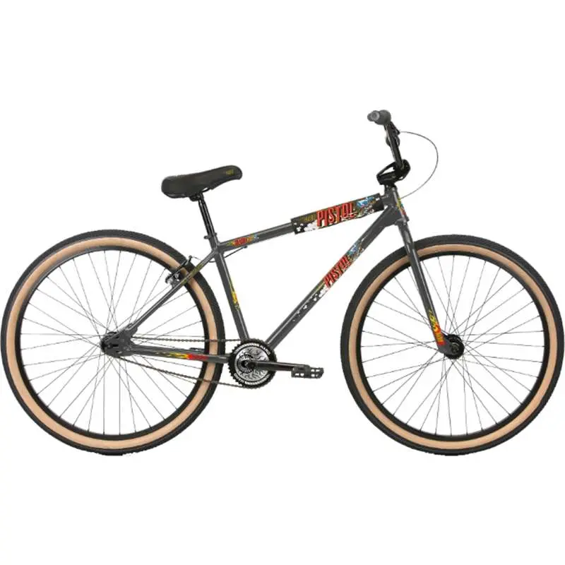 Haro Pistol 24’’ GreyThe Haro Pistol 24’’ has retro styling with modern components to create a ride that will turn heads and pull rad moves all while allowing the rider to be more comfortable than they would on a 20" sized bike. Maintenance on this model is kept to a minimum by using fully sealed bearings in the hubs, bottom bracket, and headset. The heat treated 6061-T6 alloy frame and 100% chromoly cranks, forks, and bars make sure that you can go big without worrying about the integrity of your ride. To help with the old-school aesthetics, Haro has included a padset reminiscent of the good ol' days and the frame even sports some throwback styling with a full wrap around gusset on the headtube.691840217903