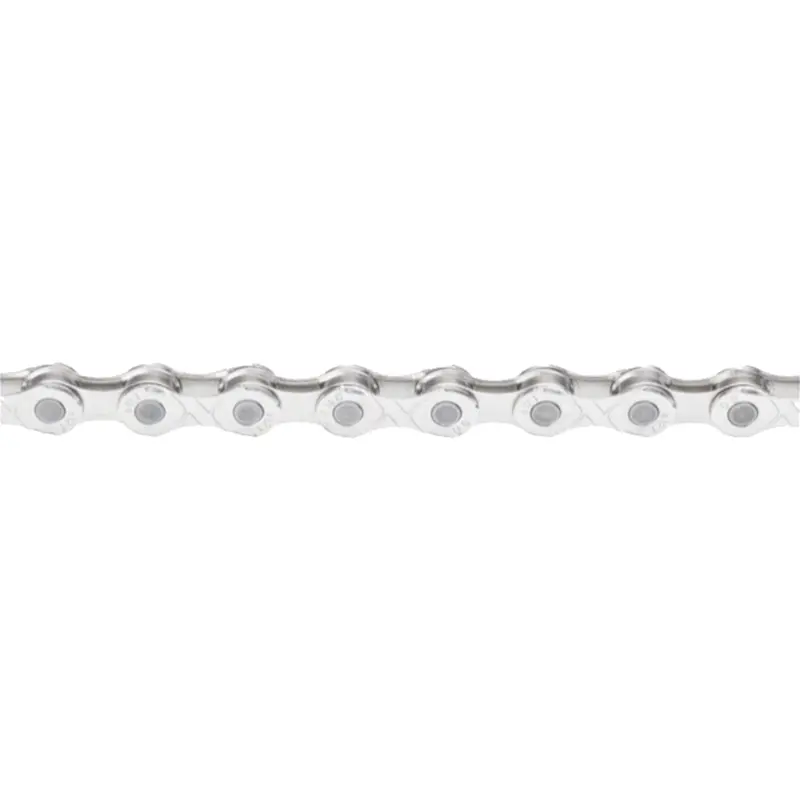 KMC e12 eBike 12 Speed Chain 136 Links SilverThe KMC e12 eBike 12 Speed Chain is engineered with KMC’s highest levels of reinforcements to hold up to the high torque situations that eBike riding demands. Every part of these chains are designed with performance and precision in mind. The Outer plate chamfering and double “X” bridge shape allows for accurate shifting, while the inner plate chamfering allows for expeditious shifting. There are 136 links and connects with a single use missing link. Available in Silver.766759712020