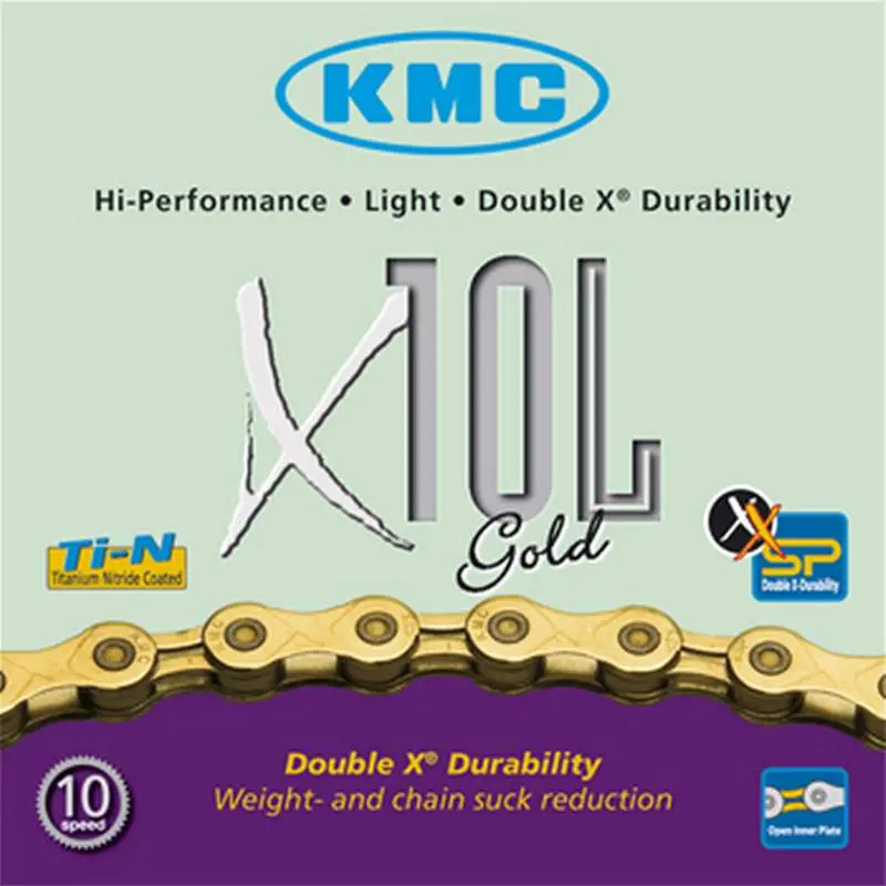 KMC X10L chain is compatible with 10 speed Drivetrains. Titanium Nitride Coated 112 links length. Double X Durability provides enhanced performance, weight and chain suck reduction.