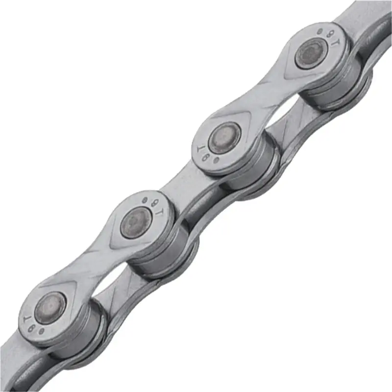 KMC X9e-Turbo EPT E-Bike Chain 136 LinksThe KMC X9e-Turbo EPT Chain is engineered around the analysis of the power transmission on e-bikes with a mid-motor showed that the frequent shifting operations under load require significantly higher safety reserves that cannot be realized with classic chains. Compatible with 9 Speed setups on Shimano, Sram, and Campagnolo and across all riding disciplines. The EPT or EcoProteq Coating is non-toxic and doubles the rust resistance compared to KMC’s RB anti-rust treatment. The Double X-Bridge construction increases efficient shift precision and shifting speed. The Inner and Outer Chamfering increases engagement with chainrings to further increase shifting abilities. The High Pin Power utilizes hollow pins to save weight on every link. This chain has 136 links and weighs 277g.766759709464