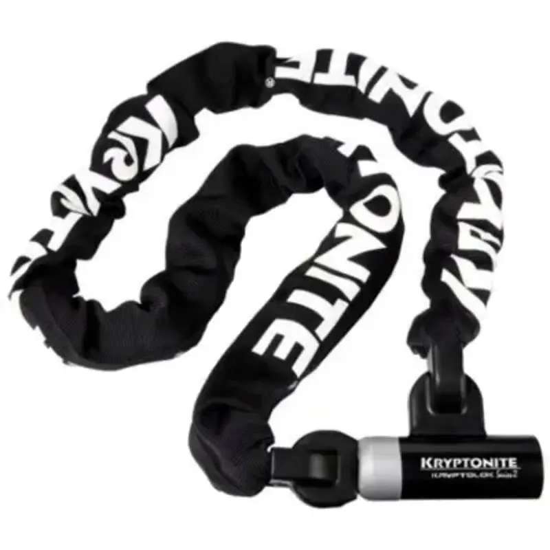 Kryptonite Kryptolok Series 2 915 Integrated Chain 5'Kryptonite Kryptolok Series 2 915 with Integrated Chain. 9mm four-sided chain links made from 3t manganese steel Patent-pending end link design secures chain to hardened deadbolt eliminating critical vulnerability. Hardened deadbolt design provides additional protection. High security disc-style cylinder is pick and drill resistant Patent pending integrated lock head with talon deadbolt Includes 2 new ergonomic I keys. Durable weather-resistant nylon sleeve prevents scratches. Key Safe Program. Compact yet strong with a $1500.00 coverage program.720018000846