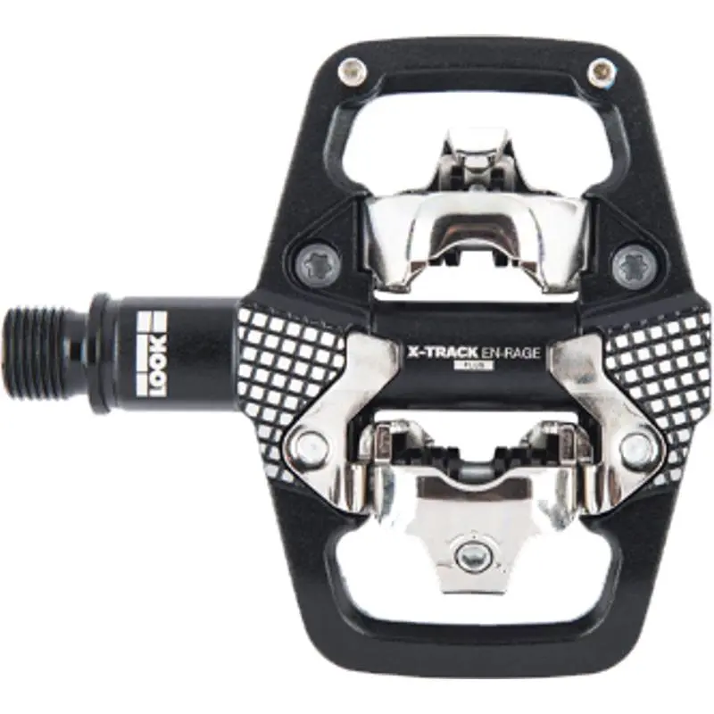 Look X-Track En-Rage Plus PedalsLook X-Track En-Rage Plus Pedal is ready for big feet and aggressive trails. The pedal is designed with an expanded platform area meaning more stability and a binding mechanism that easily sheds mud, sand, and dirt making it easy to clip on in any condition. Six degrees of float help on your knees and ankles while the low stack height keeps you right next to the spindle. Weighs only 225g and is compatible with Look X-Track and X-Tract Easy cleats.3611720144911