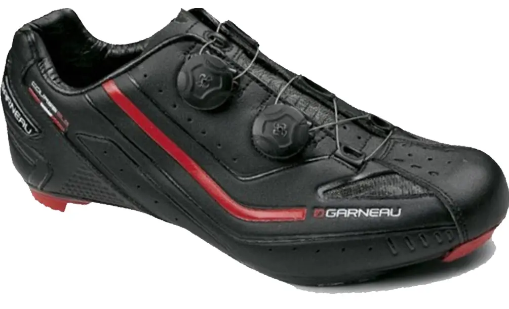 Louis Garneau Course 2LS Road Shoe 44.5 BlackThe Louis Garneau Course 2LS uses the Boa Closure system “dials-in” to a more precise fit by evenly distributing pressure and reducing pressure points. This gives the foor a perfect fit, increases comfort, reduces weight, improves power transfer. The Boa reel system offers infinite degrees of fine-tuning and with dual reels has varying amounts of security and tension. With a patented multi-vent system that intakes air via vents in the sole, channels airflow through the sole of the shoe via two internal channels, and evacuates the air through another vent in the sole. The Ex0-Jet Carbon Outsole is constructed of hot melt carbon which means that the carbon fibers used have been further processed making them not only lighter but thinner. Increased power transfer is achieved not only through the Carbon HM outsole but the HRS-300 system. This system has a heel that is injected with nylon, an amazingly resistant material that has an extremely low coefficient of friction so it perfectly secures the heel in place. This optimizes fit, and reduces loss of power from slippage. The seamless microfiber upper is ventilated with the use of steel mesh.775504606965