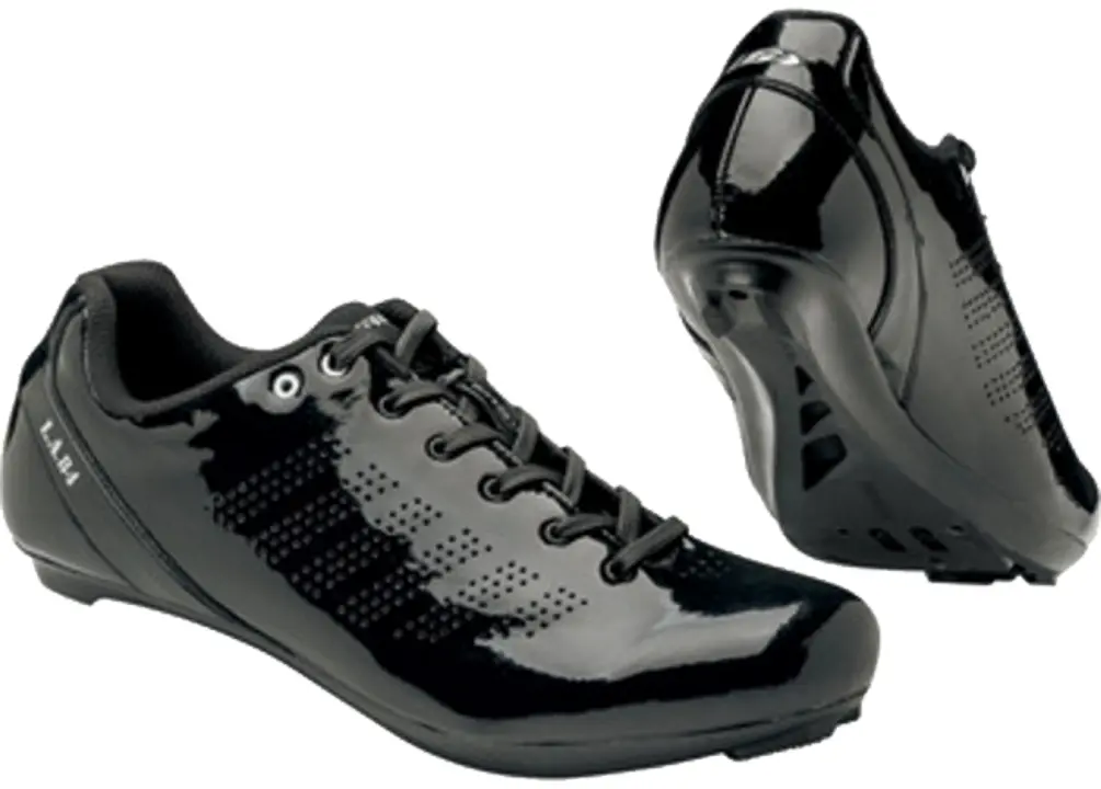 Louis Garneau LA84 Shoes 39 BlackThe Louis Garneau LA 84 Shoes bring you a classic laced up look with modern ventilation in the sole. The Ergo Air II reinforced nylon outsole with patented multi-vent system is stiff while allowing airflow. The Thermobonded synthetic leather upper is engineered to be breathable without seams to decrease the likelihood of pressure points forming. The HRS-80 gives heel support. The Fastening system includes laces and elastic to hold the laces in place. The Cool Stuff insole has arch support and a cooling effect. The heel reflector improves visibility when you decide to train after sunset. Compatible with SPD-SL, SPD, TIME, LOOK, and SPEEDPLAY with either set of shims F-4 or R-4. Available in White, Black, and Bright Yellow.775504940113