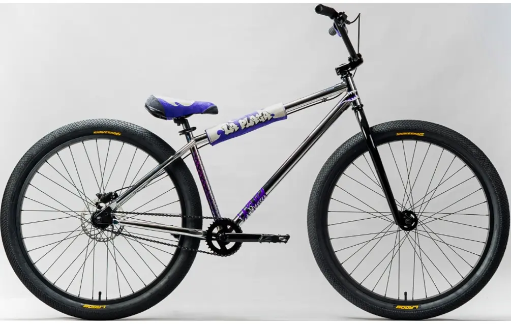 Mafia La Plaga Bomma ST 27.5’’ ChromeThe Mafia La Plaga Bomma ST 27.5’’ features a hi-tensile steel framed bike with single speed drive train, optimized for wheelies. The frames geometry is based on the well proven alloy 27.5 Bomma series. The frame features our awesome peg mounts which allow you to bolt your pegs directly to the drop-outs, saving frustrating bent axles, but also allowing you to remove the rear wheel without a socket set! We have introduced 2 amazing new colors for these bikes, which also feature a bespoke signature La Plaga aftermarket spec wheelie seat and pad set. Pushing boundaries to make sure this bike is super-easy to control on the back wheel, we included a Shimano MT200 hydraulic rear brake and our Snakeskin Stickies tires which are designed for swerving. To sum it up, an entry level bike with some incredible aftermarket level parts which will get you rolling and popping wheelies like La Plaga without having to spend a fortune on upgrades.642380612864