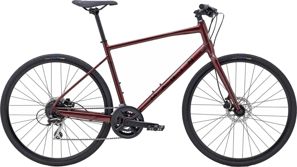 Marin Fairfax 2 X-Small Red Black The Marin Fairfax 2 is the level above the Fairfax 1, the Series 2 Fitness frame and 6061 Aluminum fork are much lighter. The double wall rims are paired with Vee Tire Co., Zilent, 700Cx35mm tires for a fast rolling, durable combination. The Shimano 2x8 drive train gives you 16 gears to shift through and navigate all the climbs and descents your adventure brings. The Clark's Clout Hydraulic Disc brakes give you massive stopping power and sensitive, controlled braking when you need it. 843346114532