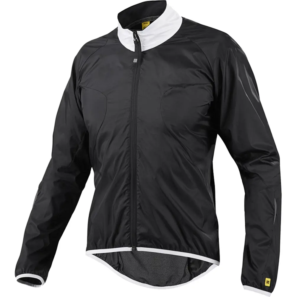 Mavic Aksium Jacket Medium BlackThe Mavic Aksium Jacket features Wind SL fabric to cut the breeze and give you protection from casual unexpected rain. This jacket is compact enough that you can stuff it into some jersey’s rear pocket and so you can only wear it if you have to. The Air Mesh underarms provide ventilation to keep you from overheating. There is a rear zippered pocket and reflective highlights to increase night safety. Available in Black.887850527068