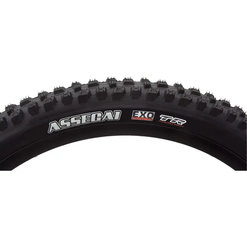 Maxxis Assegai 29 x 2.5 Folded Tire Tubeless EXO DC WTThe Maxxis Assegai 29 x 2.5 Folded Tire uses alternating vertical knobs with deep siping and 3 horizontal knobs paired with large corner knobs for improved traction in the turns. The 3 time World Champ DH rider Greg Minnaar`s signature DH tire designed by the man himself. It combines elements from 4 of Greg`s favorite Maxxis tires, the DHR II, DHF, Shorty, and High Roller. The Dual Compound (DC) tread provides a lower rolling resistance center paired with extra grip for the corners. This tire is tubeless ready and requires sealant. EXO equipped models feature Maxxis` EXO sidewall protection which help prevent puncture from sidewall abrasions. Wide Track (WT) casing optimized for rims over 35mm internal width. These tires have 60 TPI and 50 is the Max PSI. Available in Black.4717784037790