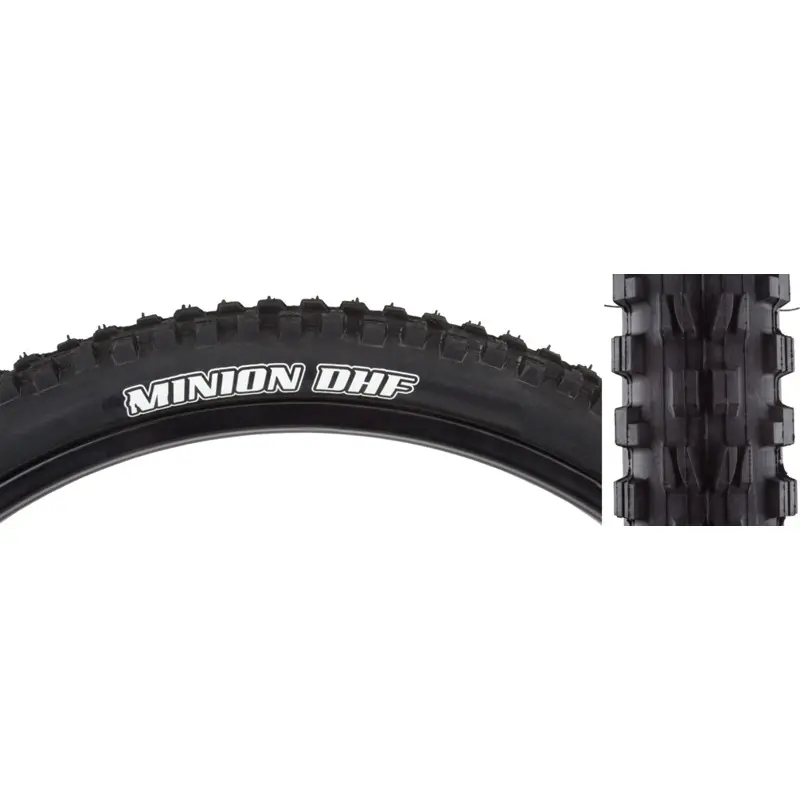 Maxxis Minion DHF 24x2.4 Tire Dual FoldingThe Maxxis Minion DHF Tire is a premier trail racing tire with built in comfort. The Ramped and siped tread has low rolling resistance and allows quick acceleration. The extra wide size offers excellent traction and support. The paddle like knobs on the center tread allow the tire dig in deep while braking. The large side knobs allow for excellent cornering. The Dual Compound uses two different compounds to give lower rolling resistance, yet increased cornering grip.4717784034614