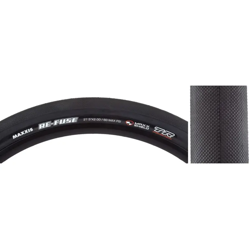 Maxxis Re-Fuse Folding 27.5 x 2.0 Kevlar Tire BlackOur most popular training tire providing excellent traction, durability and plenty of road miles in any condition. The Kevlar® belt and silkworm cap ply combine to provide a tire that Re-Fuses to puncture.TR0465