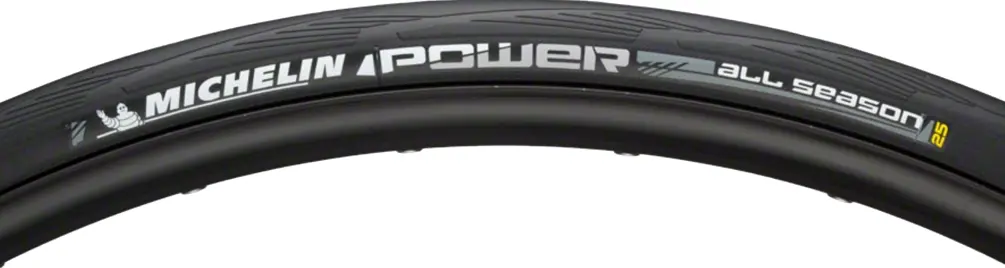 Michelin Power All Season 700x28c Tire Black The Michelin Power All Season Tire is engineered with the Michelin X-Miles rubber compound to bring you low rolling resistance, cornering grip, and extreme longevity. The Triple layered 110 tpi casing has a puncture resistant crown ply for extra protection and comfort. The additional Aramid Protek + belt under the tread provides further puncture protection! There is a tread indicator built into each tire to show exactly how much life each tire has left. Weighing only 235 grams and available in black in sizes 700x23 and 700x25. 086699246646