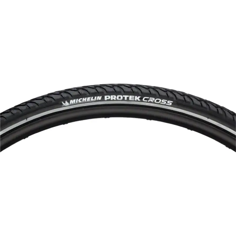 Michelin Protek Cross 700x35c Tire Wire Black/ReflexThe Michelin Protek Cross Tire provides traction with a fast rolling all-terrain tread pattern. This wire bead tire also has an additional 1mm puncture protection built in. The rubber compound is engineered to last for many miles and there is a reflective strip for increased visibility after the sun sets. These tires are made for use with E-bikes. Size: 700x35c.086699649560