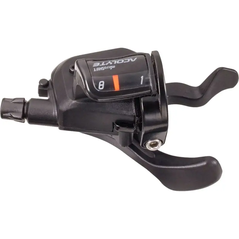 microSHIFT Acolyte Right Trigger Shifter 1x8 Acolyte Compatible OnlyThe microSHIFT Acolyte Right Trigger Shifter gives excellent and light shifting with the Flat Bar Xpress Trigger with Ergonomic trigger placement. There is a built in gear indicator. This is only compatible with 1x8 speed microSHIFT Acolyte Setups.4710495431925
