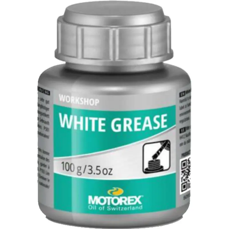 Motorex White Grease 100gThe Motorex White Grease is Lithium-based lubricant grease especially for bicycles. It has outstanding wear-reducing properties and remains malleable at cold temperatures. Ideal for slide bearings and cranksets and offers reliable corrosion and wear protection. Available in 100g bottle.7611197115632