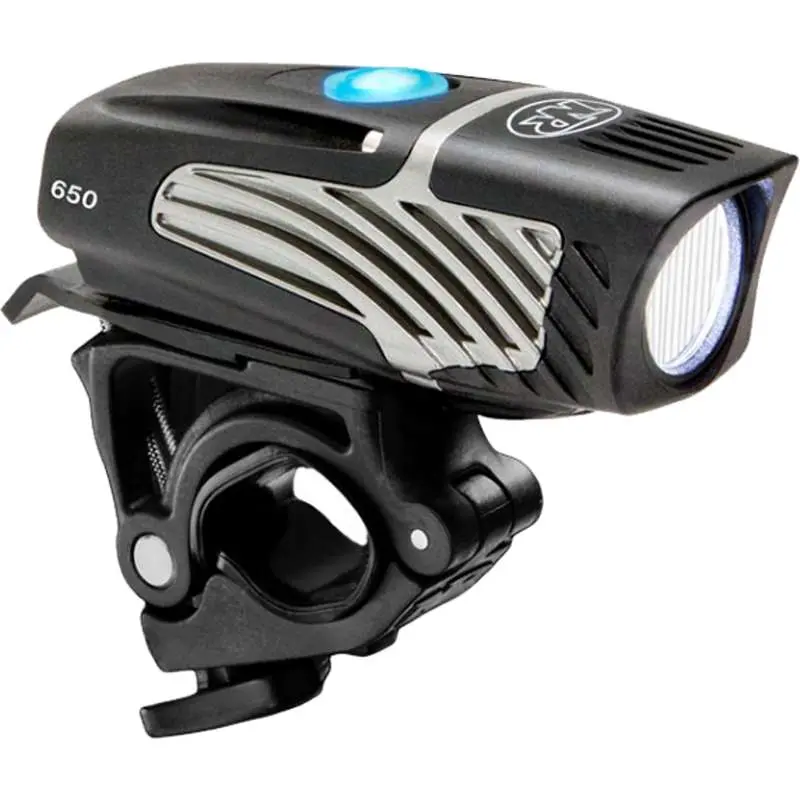 Niterider Lumina Micro 650 HeadlightThe Niterider Lumina Micro 650 Headlight is a super lightweight and versatile headlight with a Daylight Visible Flash to keep you safe before the sun sets. Holding down the power button for 7 seconds puts the light into lock mode to save battery. The Rechargeable Li-Ion Battery has the Intellicharge feature. Intellicharge cuts the charging time in half when your light has access to 500mA or more power. The Charge time is either 1:45 hours or conventionally 3:30 hours. Light meets FL-1 Standard Certified to meet lumen output. There are 5 light modes: Low-150 lumens 7 hours, Medium-350 lumens 3 hours, High-650 lumens 1.5 hours, Flash-6.5 hours, and Flashlight-50 lumens 20 hours, all based off max charge. Weighs only 130g. Comes with handlebar mount.702699067844