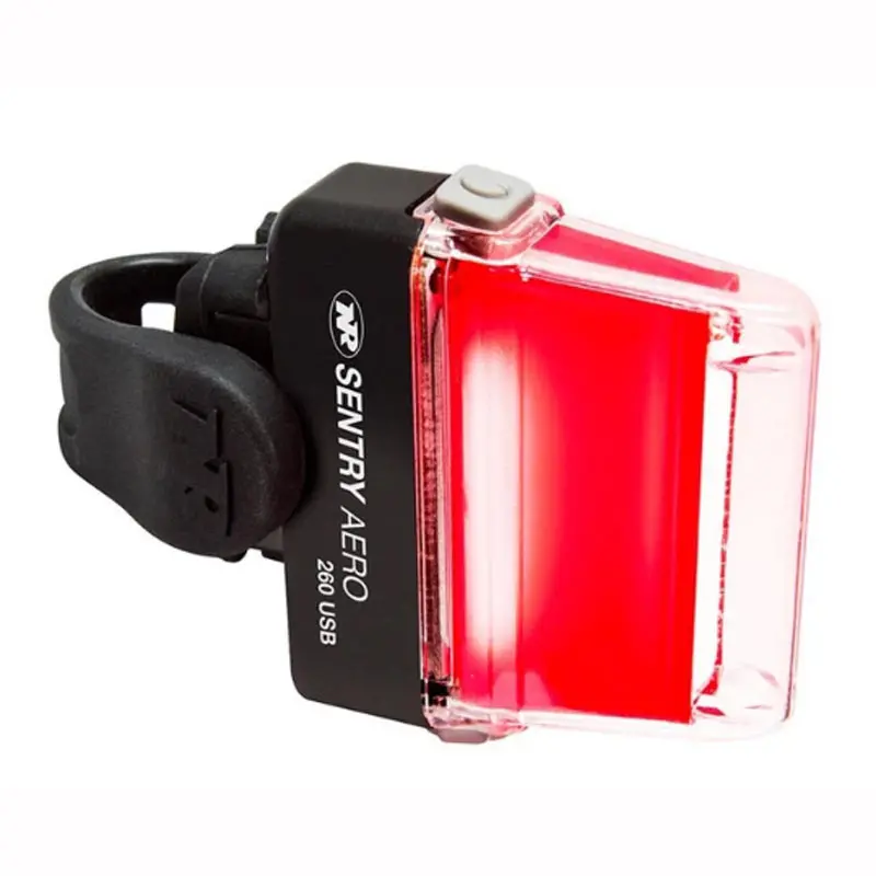 NiteRider Sentry Aero 260 TaillightNiteRider® Sentry™ Aero 260 keeps guard both night and day with an aerodynamic shape that gives cyclists 260 degrees of visibility with a matching 260 lumens of light output. 6 Modes with Run Times: 4:30 – 30:00hrs featuring Optimal VIZ Daylight Visible Flash (DVF) technology.702699050884