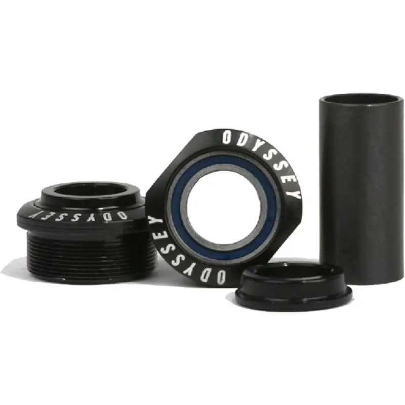 Odyssey Euro Bottom Bracket 19mm BlackThe Odyssey Euro Bottom Bracket is a replacement bracket for all 19mm crank spindles on BMX bikes. Includes spacer for 68mm bottom bracket shells and 2 aluminum dust covers. Cups are made of machined aluminum.630950915903