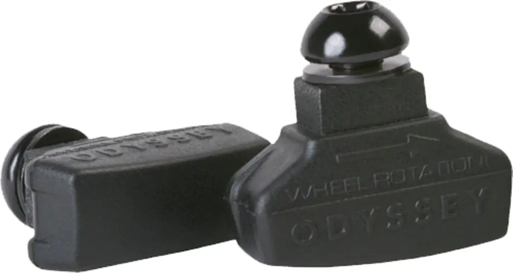 Odyssey Ghost Brake Pads BlackThe Odyssey Ghost Brake Pads take the hassle out of changing your brake pads. By removing the traditional dome shaped washers, assembly is super easy. There is an in-bound bolt that needs a 5mm hex key. These pads are available in both Black (Standard) and Clear (Soft) Compounds. The Soft Compound is great for powdered coated rims. Set of two brake shoes.630950030668