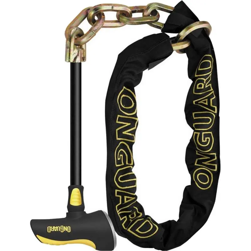 OnGuard Beast Chain with X2 Steel Bar Lock 140cm 4.5 ft x 11mmOnGuard Beast Chain Lock with Steel Bar. Onguard’s new Beast Hexlink chain links are made of ultra-hardened reinforced steel providing maximum cut resistance. The narrower inner width of individual Hexlinks provides the highest resistance against attack. The double layer nylon fabric cover prevents scratching and allows compact coiling. 5 Laser cut keys with 1 LED Micro lighted included.768661281151