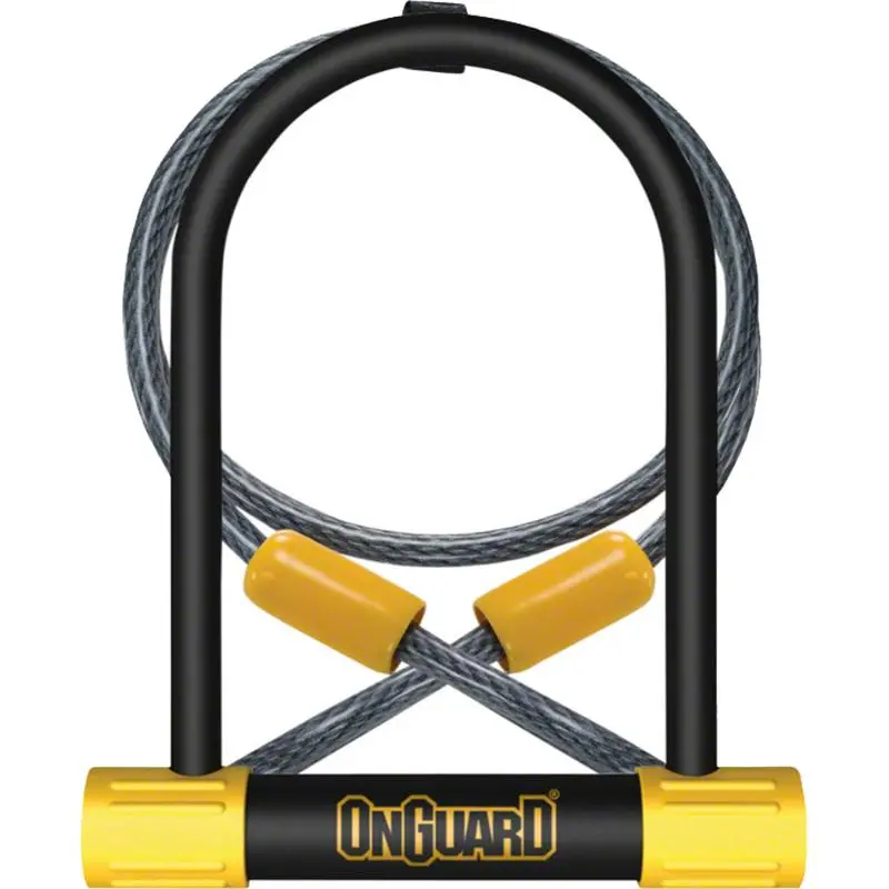 OnGuard BullDog DT U-Lock and Cable 8012OnGuard BullDog DT 9" shackle combined with 4' braided steel cable let's you lock bike to standard parking meter post without removing front wheel. 5 Laser Cut keys included with one Lighted for night time use. Shackle Dimensions: 115mm x 230mm (W x H x Diam) (4.5" x 9") x 13mm (0.51") D Cable Dimensions: 120cm x 10mm (4' x 0.39")768661280123