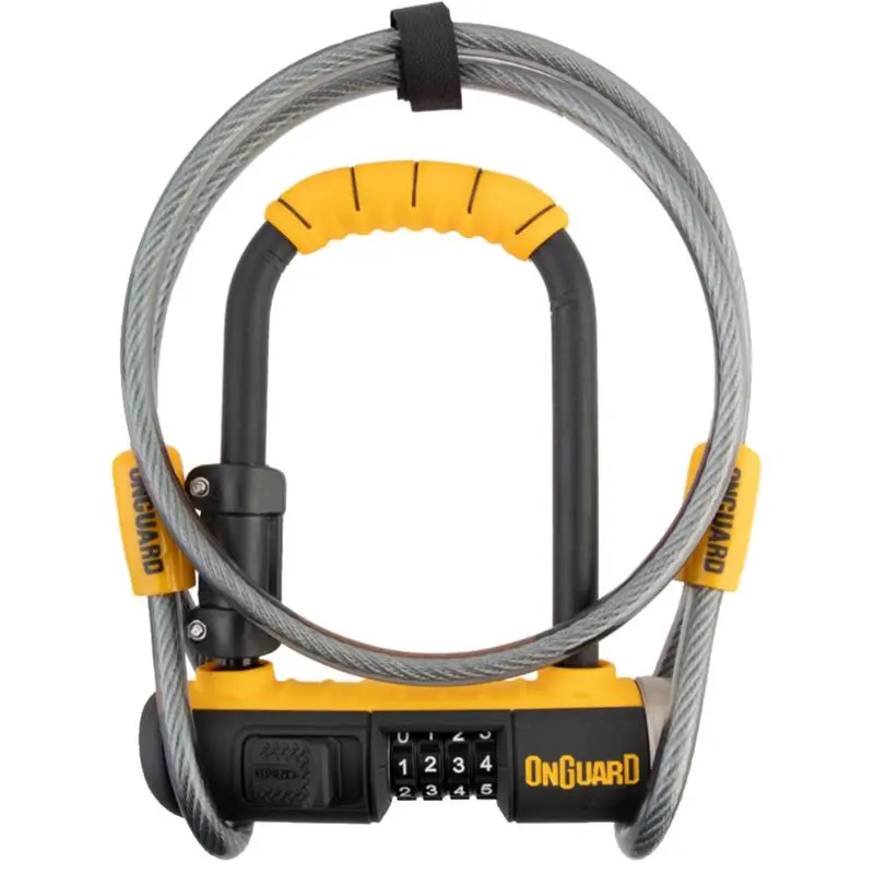 OnGuard Bulldog Mini DT 8015CThe OnGuard Bulldog Mini DT 8015C uses a Steel Ball Click-Combo Gear System offers high security with superior protection from pick and pull attacks. The X2P Double Bolt Locking Mechanism locks shackle on both sides. Set your own 4-digit combination, there are 10,000 variations, so no keys are forgotten or lost. The 13mm Ultra-hardened steel shackle resists bolt cutters and leverage attacks. There is a double rubber coating on the handle to prevents scratches. Includes the mounting bracket. This lock comes with a $1501 bicycle anti theft offer. See Onguardlocks.com for details.768661283018