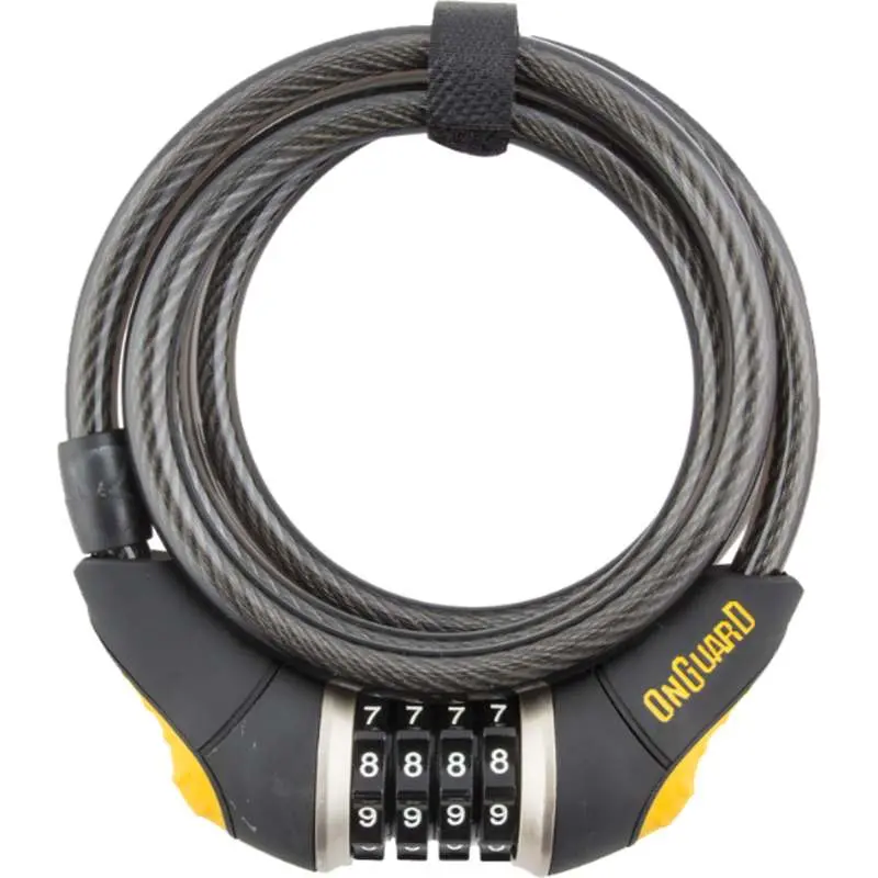 The Onguard Doberman 8032 Steel Ball Combo lock body is permanently forged to light duty 185cm x 10mm (6’ x 0.39”) self-coiling cable.