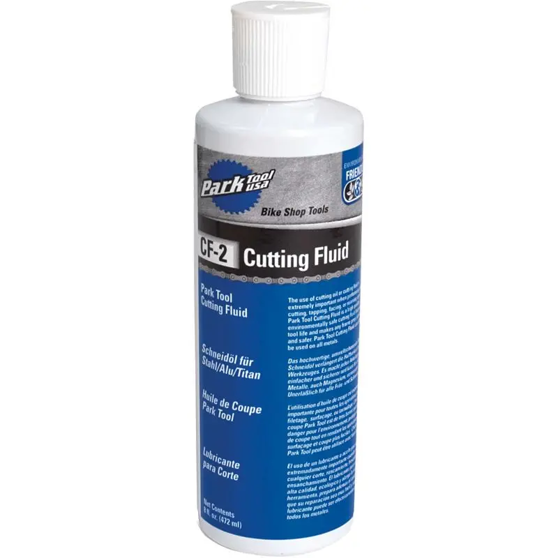 Park Cutting Fluid CF-2Park Cutting Fluid is a quality cutting fluid used when performing any cutting, tapping, facing, threading, or reaming procedure. CF-2 Park Tool Cutting Fluid is an environmentally friendly, soy-based cutting fluid that makes any frame cutting tool work better and last longer. Park Tool CF-2 can be effectively used on all metals. 8 oz. plastic bottle with a flip-top spout.763477001078