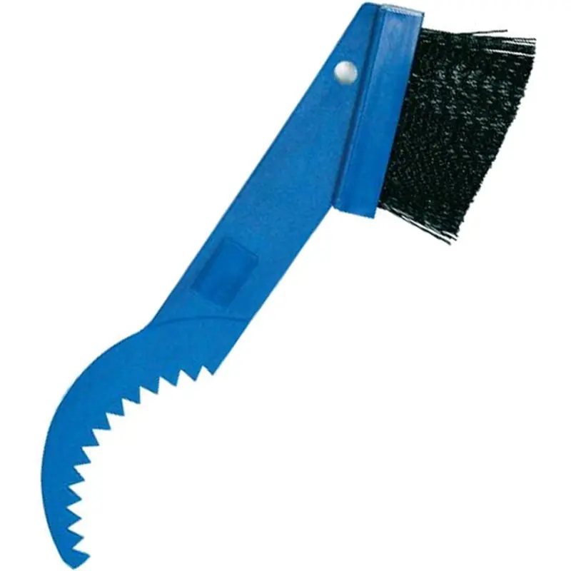 Park Tool's patented GearClean Brush has a unique design. A large comfortable handle with a curved, toothed-end reaches dirt deep between the gears, and tough nylon bristles clean the derailleur and chain.