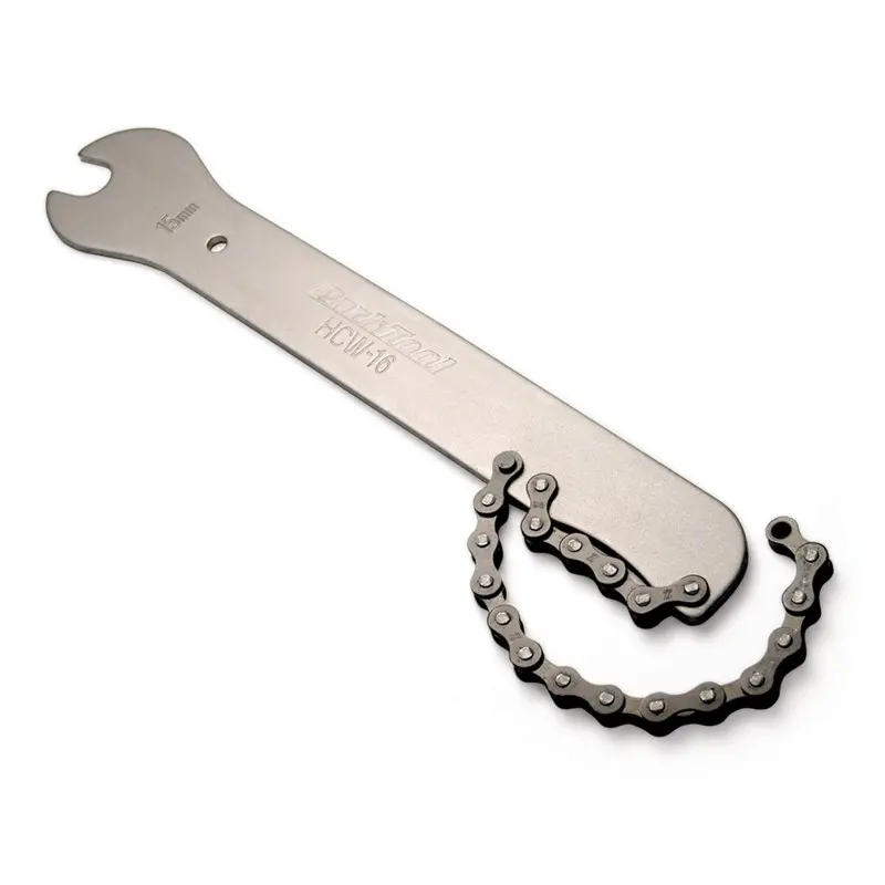 Park HCW-16.3 Chain Whip/Pedal Wrench. 15mm Pedal Wrench can be used on all pedals. The chain whip is for use in removing 5-12 speed cassettes.