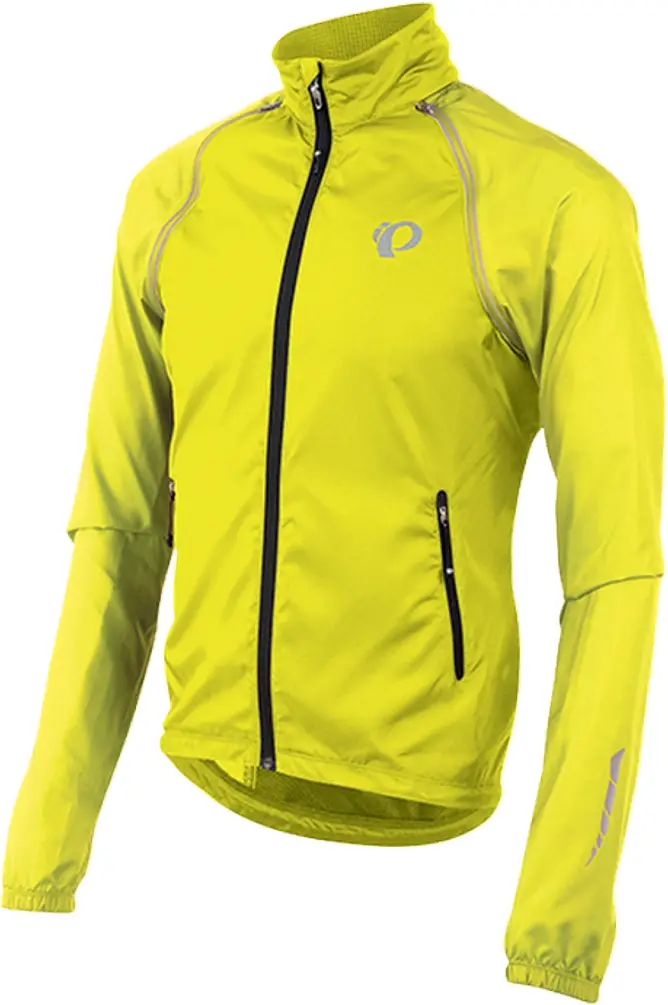 Pearl Izumi Elite Barrier Convertible Jacket Medium Screaming Yellow The Pearl Izumi Elite Barrier Convertible Jacket is extremely versatile with its zip off sleeves. A great wind barrier on colder days and a comfortable jersey on warmer days. The 360 degree reflective pattern gives great protection at night. Available in Black, True Red, Screaming Yellow, Mykonos Blue, and Screaming Green. 888687038345