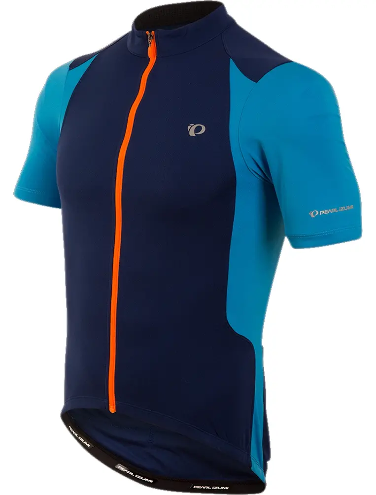 Pearl Izumi Select Pursuit Jersey Medium Blue Depths/Bel Air BlueThe Pearl Izumi Select Pursuit Jersey is a race ready jersey designed for the most aggressive riding you can find yourself aiming for the top spot. This form fitting jersey helps reduce aerodynamic drag while Select Transfer Fabric has excellent moisture wicking properties to keep you dry as you fly. There is a full length zipper for maximum ventilation when you require it. There is an elasticized gripper on the back to prevent ride up. There are three rear traditional pockets. There are also reflective elements for low-light conditions. Available in Black/True Red, Screaming Yellow/Black, Black/Smoked Pearl, Pepper Green/Black, and Blue Depths/Bel Air Blue.888687528082