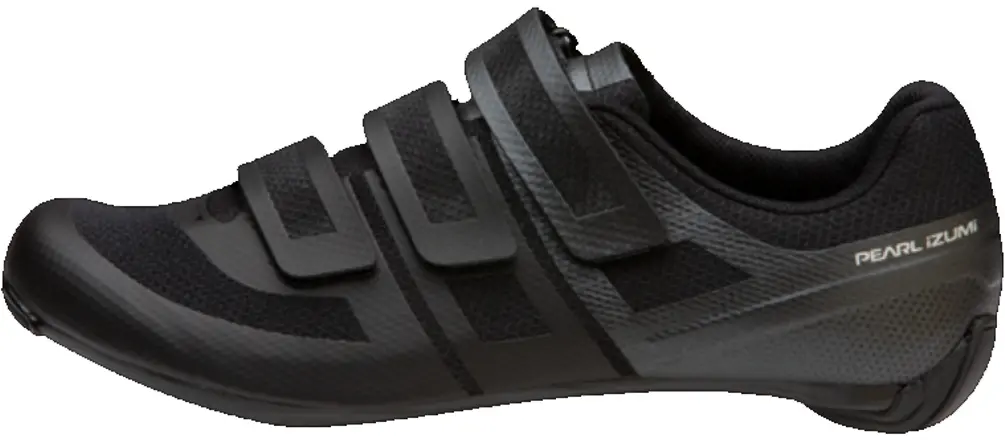 Pearl Izumi Women’s Quest Road Shoe 36 Black/BlackThe Pearl Izumi Women’s Quest Road Shoe is a fantastic entry level road shoe. The bonded seamless upper is comfortable, breathable, and has three Velcro straps across the top. The 1:1 composite power plate has a carbon fiber forefoot insert provides lightweight stiffness and durability. There are EVA foam and rubber heel bumpers for comfort and stability while pedaling. These shoes are compatible with 3 bolt SPD cleats and pedals. Available in Black and White/Fog.191234579049