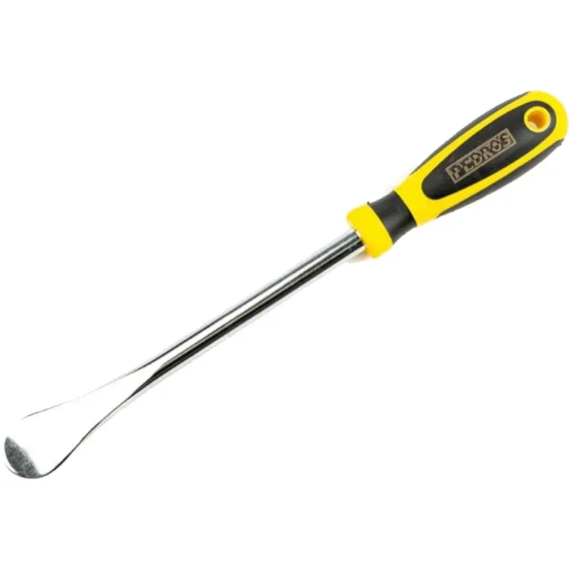 Pedro’s Downhill Tire Lever II The Pedro’s Downhill Tire Lever II blends the leverage and strength of its predecessor with a smaller size handle. The design helps when battling a tough wire bead downhill tire or straining to mount a tubeless tire with a liner, sometimes you just need a little extra help. The chrome plated steel spoon blade has radiused edges. 790983298555