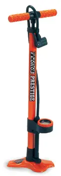 Pedro's Prestige Pump is a Steel barrel and base and super tough. Dual presta/schraeder pump. Can easily pump tires to 160psi with the super accurate guage