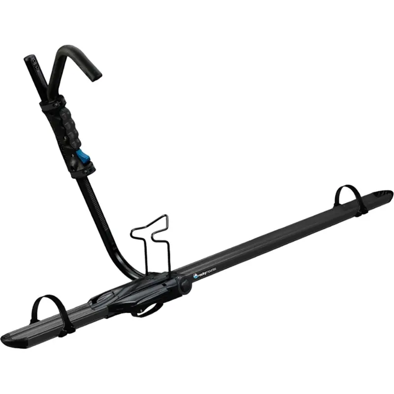 RockyMounts BrassKnuckles RoofTop Rack 12010RockyMounts BrassKnuckles RoofTop Rack eliminates tire removal as you travel to your next adventure. Simply raise the arm, secure it against the front wheel of your bike and tighten the straps. There is no contact with the frame which eliminates scuffs and scratches. Easily attaches to all stock and vendor roof racks without adapters and arm folds completely flat when not in use. Can accommodate fat bikes with an additional fat bike kit sold separately. RockyMounts BrassKnuckles RoofTop Rack gets its name from its ergonomic shaped handle plus its non-corrosive aluminum construction that handles the elements. Feel confident and secure with your RockyMounts BrassKnuckles RoofTop Rack.186135000020