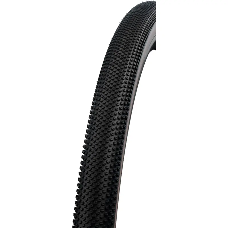 Schwalbe G-One AllRound 700x40c Tire Fold Tubeless Evo Super Ground Addix SpeedGrip BlackThe Schwalbe G-One AllRound 700 x 40c Tire combines the versatility and balanced riding characteristics, whether on asphalt pavement, dirt roads or even off-road. The tread uses many small close together round knobs to roll easily and with low vibration. It grips safely and reliably on gravel roads and smoother, dry trails. This tire combines Evolution Line materials, Tubeless Easy reinforcements, the Addix SpeedGrip Compound, and the Super Ground Casing to produce a tire that works wonders on and off roads. The TLE or Tubeless Easy makes it easier to mount, reduces sidewall sealant leakage, and increases the resilience of the sidewalls to cuts. The Addix SpeedGrip Compound performs across the board of riding surfaces for XC, AM, and Trails. The Super Ground Casing uses a bead to bead SnakeSkin insert and three layers of carcass under the entire tread to ensure a balance between safety and weight. This folding bead tire works best ebetween 45-70 PSI and has a weight of 480g. Available in Black.4026495885089