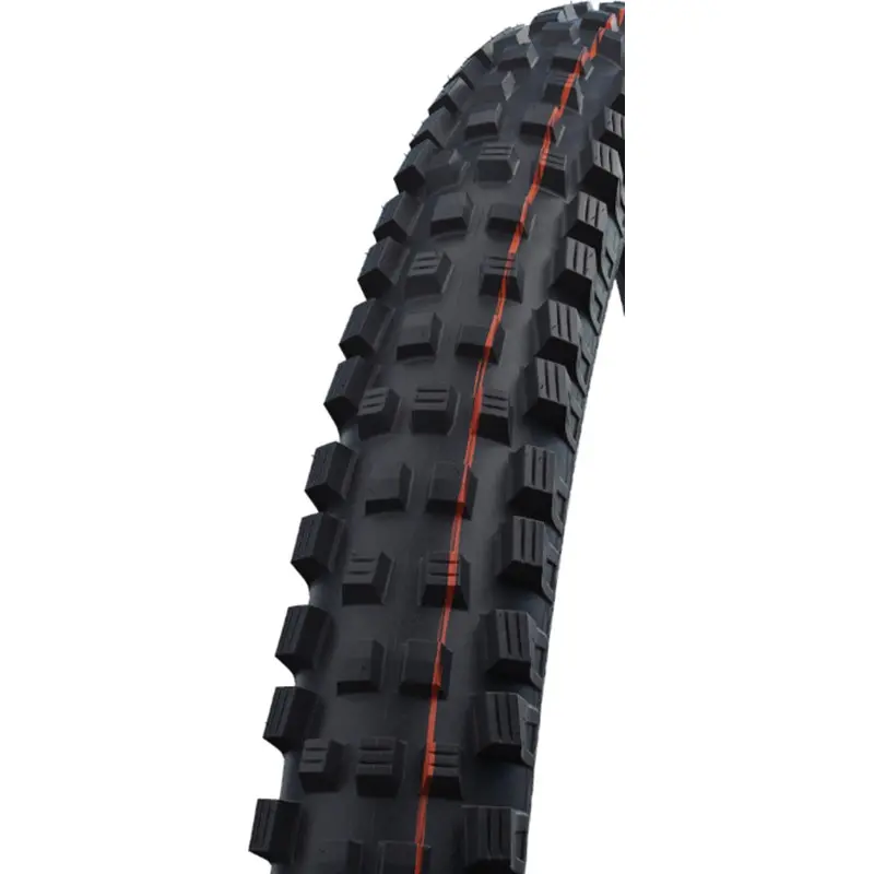 Schwalbe Magic Mary 27.5x2.4 Tire Folded Tubeless Evo Super Gravity Addix Soft E-50 BlackThe Schwalbe Magic Mary Folding Tire performs with exceptional grip and cornering in almost all tracks and conditions. The sophisticated intermediate profile is combined with the best compounds and construction, pushing the limits to surprising levels. The strong shoulder studs and aggressive, open tread design provide maximum braking traction and cornering grip even in extremely muddy terrain. Equipped with V-Groves specially developed for Magic Mary, every stud can bite into the ground for even more grip. The angled studs in the middle of the tread optimize the rolling characteristics. This tire is tubeless ready and uses Schwalbe’s Super Gravity Casing. This optimizes the protection with four carcass layers, one layer of Apex sidewall protection, and a bead-to-bead Snakeskin fabric layer. The Addix Soft Compound has excellent balance of grip, dampening, and durability meant for the most intense downhill and enduro riding. This tire is tubeless ready and weighs only 1110 grams. This tire has 67 TPI and a tire pressure range of 23-50 PSI. Available in Black.4026495878050