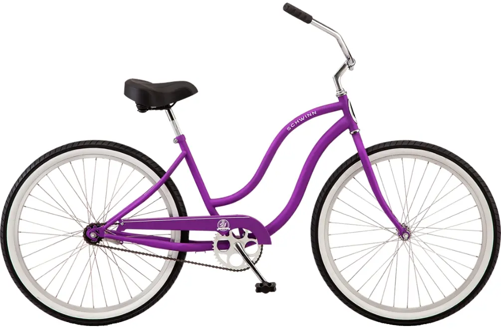 Schwinn Women’s S1 Purple Take The Schwinn Women’s S1 to the boardwalk has never been easier and at such a great value. The simplicity and joy of the S series Schwinn cruisers come to life with a vintage look that feels fresh. With key components that add to the comfort and appeal of these bikes and an array of modern colors, you are sure to see an S series cruiser on the next boardwalk you visit. Available in Red, Purple, and Pink. 038675217768