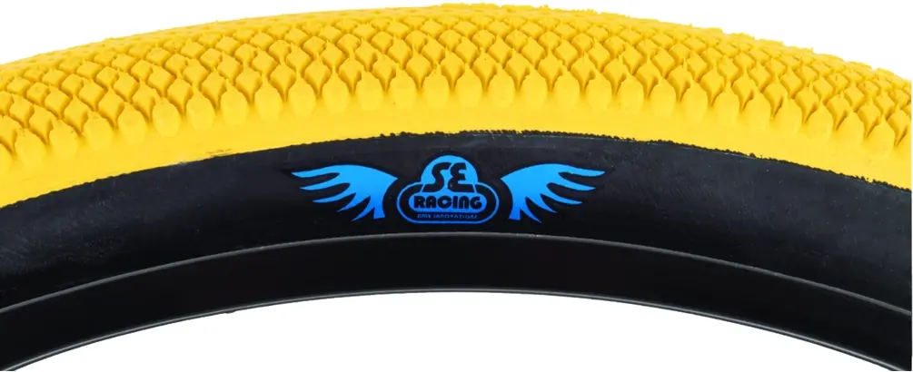 SE Bikes Speedster 29x2.1 Tire Wire Yellow/BlackThe SE Bikes Speedster Tire 29x2.1 is designed for speed and traction on hard pack or paved terrain. The large diamond shaped side knobs provide grip in corners while the small thread knobs provide the ultimate speed and traction in all conditions. The MPC or Multiple Purpose Compound has a durable long life, compound that is designed to be functional on all terrain types. Wire Bead Version with 27 TPI available in Grey/Black, Light Blue/Black, Red/Black, Red/Tan, Yellow/Black, Black/Tan, Blue/Black, and Blue/Tan.785749198200