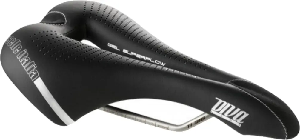Selle Italia Diva Gel Superflow Saddle Small Black The Selle Italia Diva Gel Superflow Saddle is engineered with extra padding and the perfect shape for women specifically to train for long hours on the road without discomfort. The absorption system between seat and frame helps to eliminate vibrations from road. The Fibra-tek cover material is easy to clean and built to last for years to come. Superflow technology reduces all physical limitations caused from prolonged pressure in the perineal area, designed for optimal posture and comfort. The titanium Rails are at least 25% stronger than traditional rails with 15% less weight. Available in Small 135x270mm 275g and Large 152x270mm 285g. 8030282498808