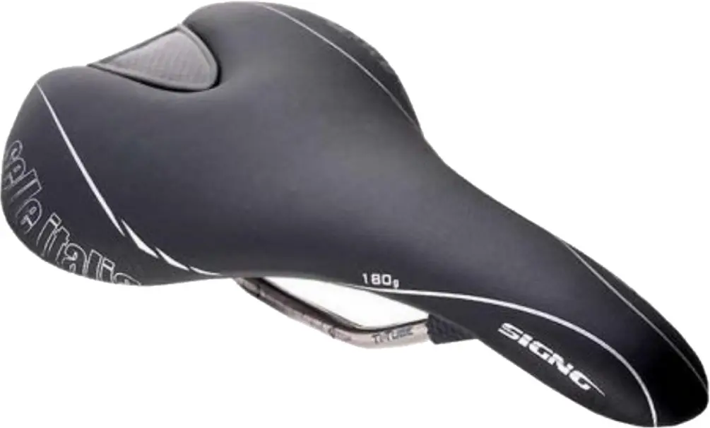 Selle Italia Signo Genuine Gel Saddle BlackSelle Italia Signo has a Genuine Gel padding system. Italian leather on a patented rail system. The rails meet in the middle in the rear of the saddle instead of the rear corners. This allows for the rider's weight shift during pedalling. The patented shock absorbing system reduses rider fatique.8030282323636