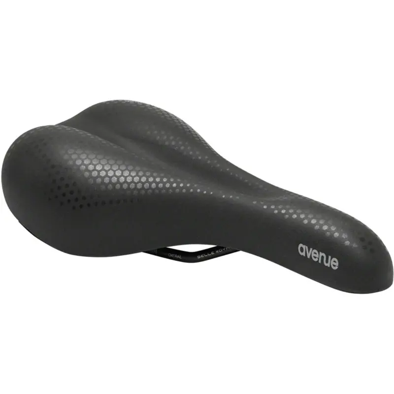 Selle Royal Avenue Saddle BlackThe Selle Royal Avenue Saddle is equipped with extra-thick Royalgelâ„¢ cushioning to reduce sit-bone discomfort, and with a central channel that ensures pressure relief in the perineal area. Length 265 mm Width: 158 mm Weight: 462 grams. Durable and versatile, this technology absorbs pressure and distributes it across the saddle surface, ensuring the best support for even your longest rides. The patented Selle Royal technology makes the cover sealed and substantially waterproof, even when exposed to heavy, wet weather. The ergonomic channel is engineered to ergonomically follow the shape of the body, delivering pressure relief in the soft tissue areas and support in the ischiatic zone.S2000270