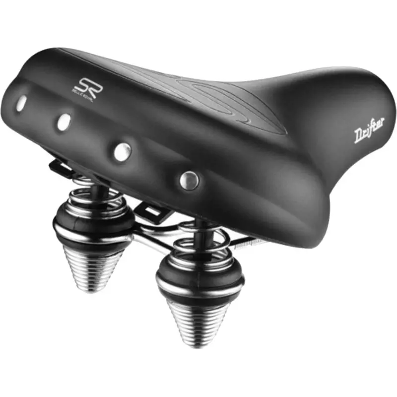 Selle Royal Drifter Strengtex Saddle BlackThe Selle Royal Drifter Strengtex Saddle is a vintage-inspired, super-padded bike seat for relaxed rides. This is the large version. Roll through the city in timeless style. With its vintage-inspired metal rivets, double springs and an iconic, rounded design, this saddle is a must-have for classic-bike enthusiasts. The ROYALGELâ„¢ is superior to any other padding material for its unique formulation, providing the highest level of comfort. Durable and versatile, this technology absorbs pressure and distributes it across the saddle surface, ensuring the best support for even your longest rides. There are Dual Suspension Springs for a striking look and excellent suspension. The standard springs have evolved to improve suspension performance while retaining that classic allure, so you don't have to compromise on style or bounce. The Royal Vacuum coating lets you enjoy a dry ride with a water-resistant saddle. This patented Selle Royal technology allows the saddle to be 100% sealed and substantially waterproof, even when exposed to heavy, wet weather. The dimensions are 246mm x 271mm Width x Length. Weighs 1133g. Available in Black.S2200505