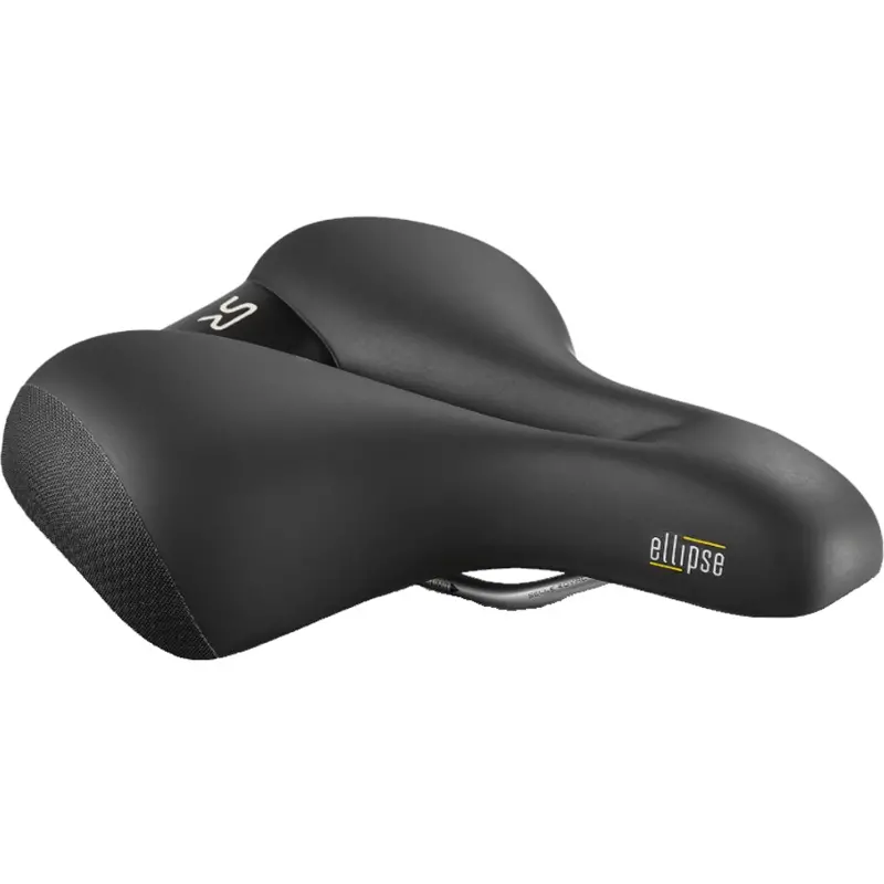Selle Royal Ellipse Saddle Relaxed BlackThe Selle Royal Ellipse Relaxed Saddle is engineered for urban rides of any length thanks to the patented Royalgel padding. There is also a central anatomic cut-out that ensures pressure relief on delicate perineal areas. The Royal Vacuum makes this saddle 100% sealed and substantially waterproof in heavy rain. For added comfort, shock-absorbing elastomers take the bumps out of rough roads. Equipped with double-cover side defense for an extra layer of anti-scuff protection. There is an integrated clip system makes it easy to add an additional light or saddle bag when on the move. This is the relaxed version of this saddle, intended for you to be comfortably seated in an upright 90-degree position. The dimensions are 251mm x 223mm wide. Weighs 638g. Available in Black.8021890593498