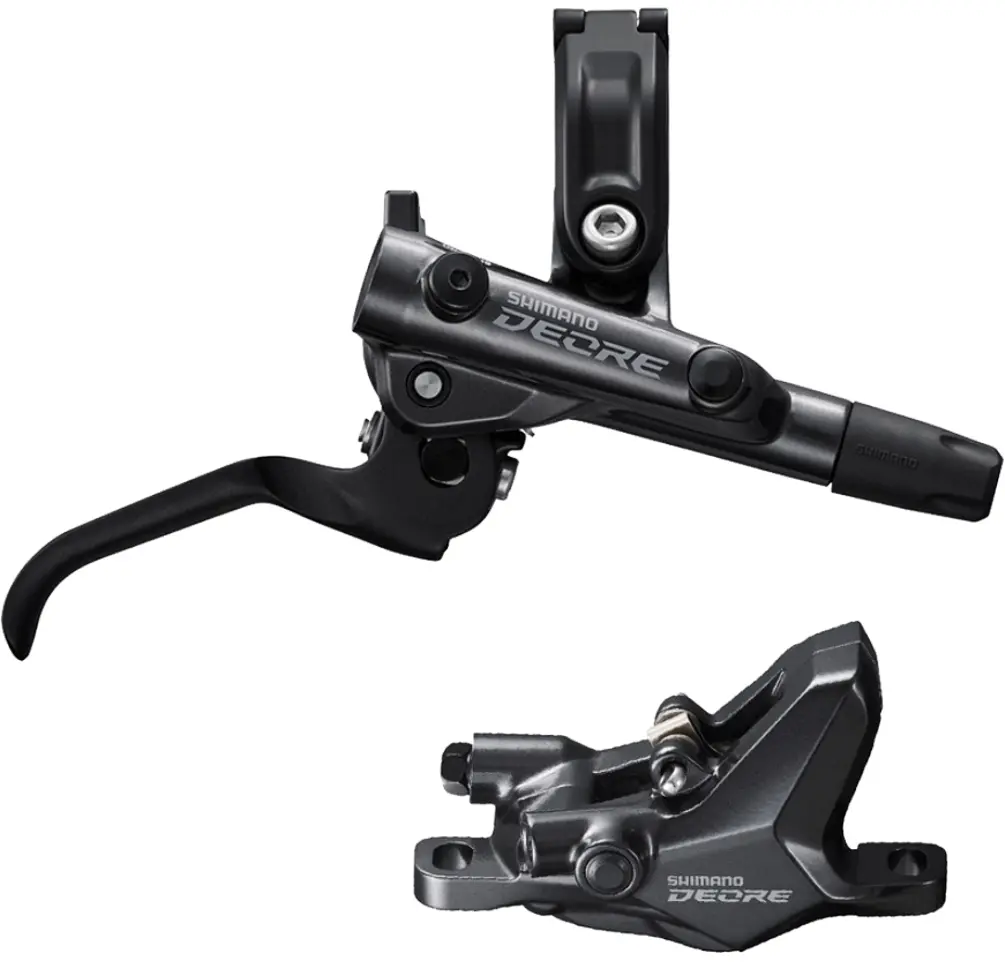 Shimano BR-M6100 Deore Hydraulic Disc Brake Kit Rear Metallic BlackThe Shimano BR-M6100 Deore Hydraulic Disc Brake Kit comes with a Pre-bled system with brake lever, 2-piston brake caliper, and brake hose with a disconnected pre-bled lever. These systems are excellent and quick to install, pre-bled for your convenience and there is a lever to pull when brakes are installed to engage the mechanism. These brakes have a quicker brake engagement with a shorter free stroke for more control. The cockpit is adjustable so you can get the perfect angle for your hand shape. The caliper features lightweight braking performance and reliable stopping power in all conditions. The super lightweight pistons engage quick for excellent control. Uses Shimano Mineral Oil. Uses Metal brake pads w/o Fin. Uses the SM-BH90-SS Brake Hose Kit. Available in front and rear.192790687056