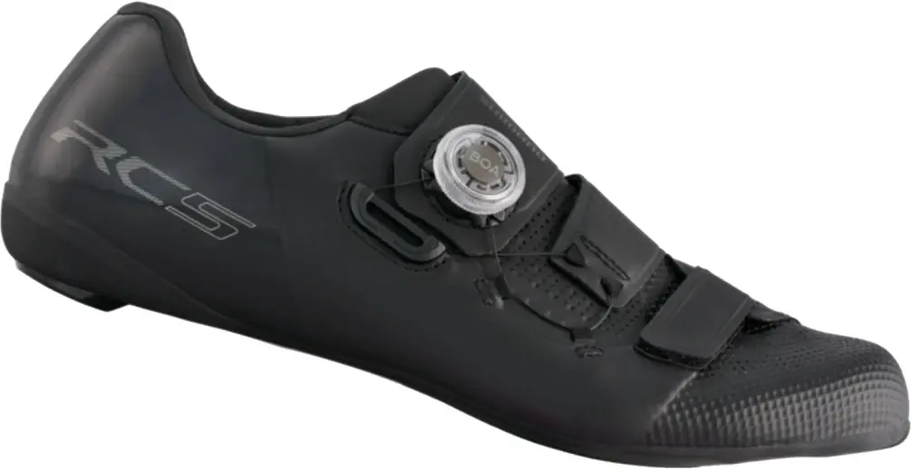 Shimano SH-RC502 Wide Shoe 40 Black The Shimano SH-RC502 Wide Shoe is super lightweight and designed with similar design pattern as the S-PHYRE line. The Mesh/TPU and Synthetic leather material covered upper in optimized part to provide a comfortable fit and keep the weight low. The surround wrapping upper structure reduces overlap and provides a glove-like fit. The integrated seamless midsole and upper construction set a new level of fit, stability, and lightweight performance. The BOA L6 dial on instep strap quickly and comfortably secures a wide range of foot shapes. The carbon fiber reinforced nylon midsole allows for solid power transfer to the pedals. This is the Wide Version. Available in Black. 192790987163