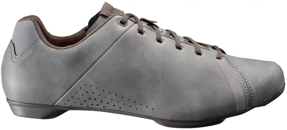 Shimano SH-RT4 Shoe 42 Grey The Shimano SH-RT4 Shoe is engineered for comfort and efficiency on and off the bike. The classic lace up style is great for walking around after a long day of riding. There is a glass fiber reinforced shank plate for an optimal power transfer to your pedals. There is a full length rubber sole for excellent traction. The upper is a mix of fabric and synthetic leather for a secure fit. There is an adaptable cup insole that gives you heel a home of its own. There is 360 degree reflectivity to increase your safety in urban environments. Available in Grey. 689228990593