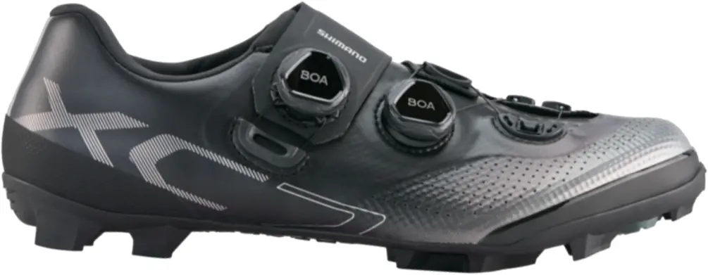 Shimano SH-XC702LE Shoe Wide 42 BlackThe Shimano SH-XC702 Shoe Wide uses the lightweight Shimano Ultread XC rubber outsole that delivers competition-grade grip that lasts. The surround wrapping upper structure reduces overlap and provides a glove-like fit. The Ultra-rigid, lightweight carbon fiber reinforced midsole is stiff and has a low stack height midsole helps stabilize foot, maximizes power transfer and efficiency. The supple high-density synthetic leather with perforation and lightweight mesh/TPU combination bring superior fit and breathability. The Dual independent BOA L6 dials allow quick, micro tension adjustments to get the perfect fit. The adjustable powerzone lace guide securely holds forefoot. This is the wide version. Available in Black.192790947334
